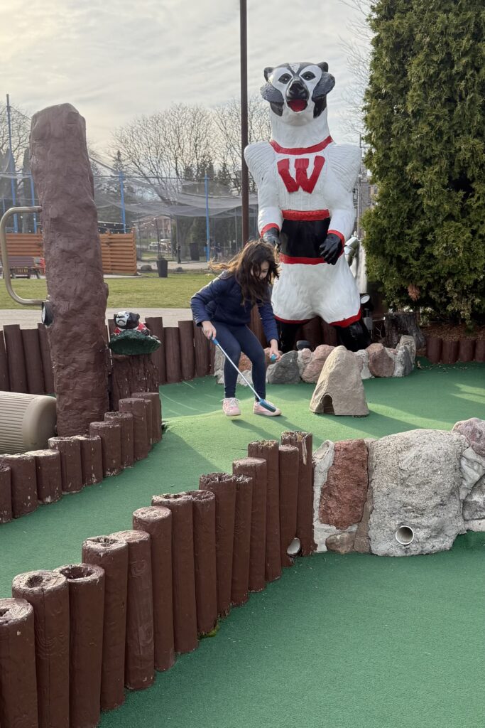 When the temperatures hit 50 here in the Upper Midwest, outdoor mini golf centers shake off their winter slumber and whisper “Come.” My little granddaughter, ever mindful to the call of the wild, answered with a war whoop. What could we do but laugh and go along?