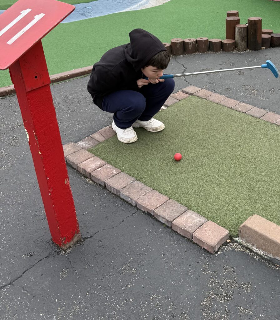 The chosen cousin for this adventure is on the cusp of teen-hood. He is polite, deferred to whatever the Wild Child wanted to do, and took his golf game with just the right blend of self-deprecating humor and thoughtful consideration. He assessed, he checked the goal, the obstacles, the options.